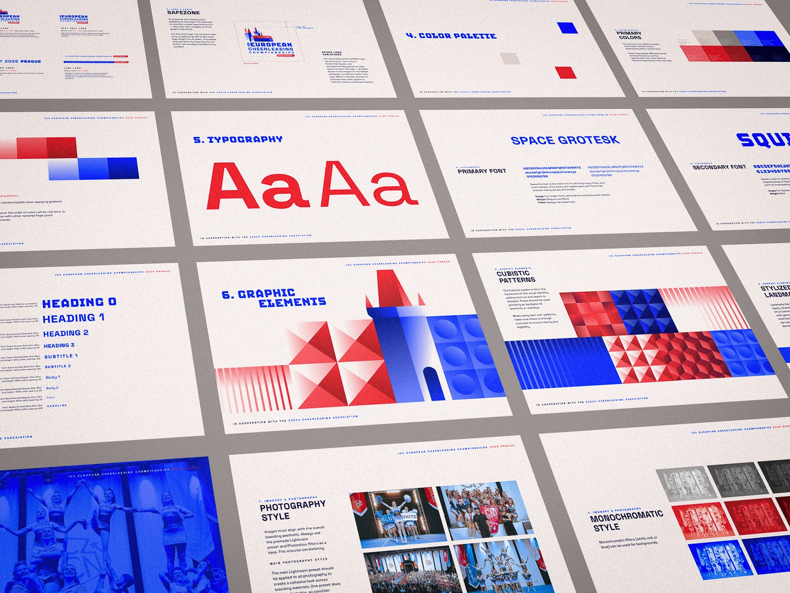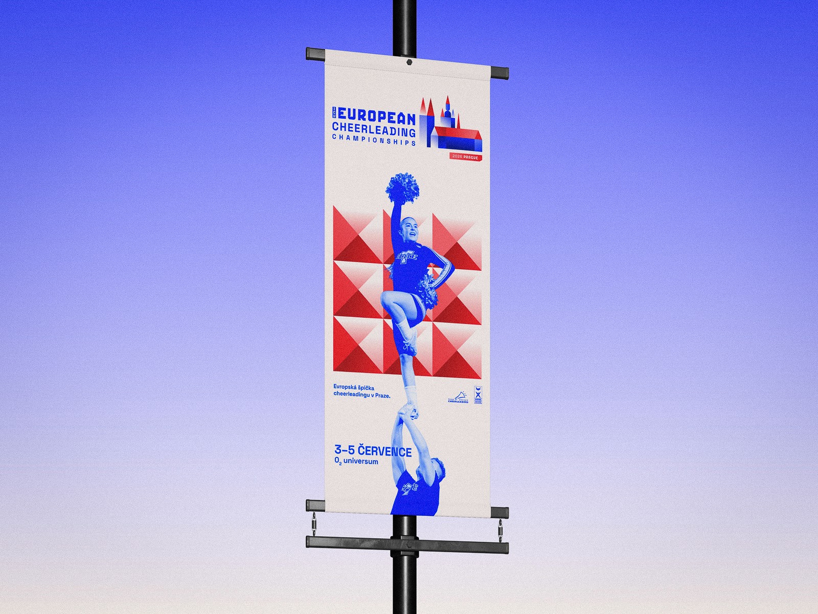 Designed to perform across all environments—from arena spaces and stage design to digital platforms and live broadcasts—the visual identity reflects cheerleading as a sport of the 21st century. By merging Czech Cubism with modern athletic expression, the ICU European Cheerleading Championships 2026 presents a visual identity that is both culturally grounded and forward-looking.
